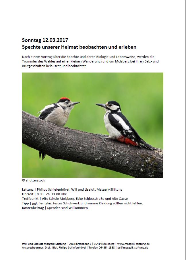Die Will und Liselott Masgeik Stiftung lädt zu der Veranstaltung „Heimische Spechte beobachten und erleben“ am Sonntag den 12.03.2017 um 8:00 Uhr ein.