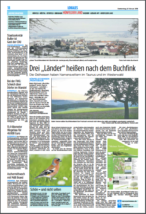 Hünfelder Zeitung: Drei „Länder“ heißen nach dem Buchfink