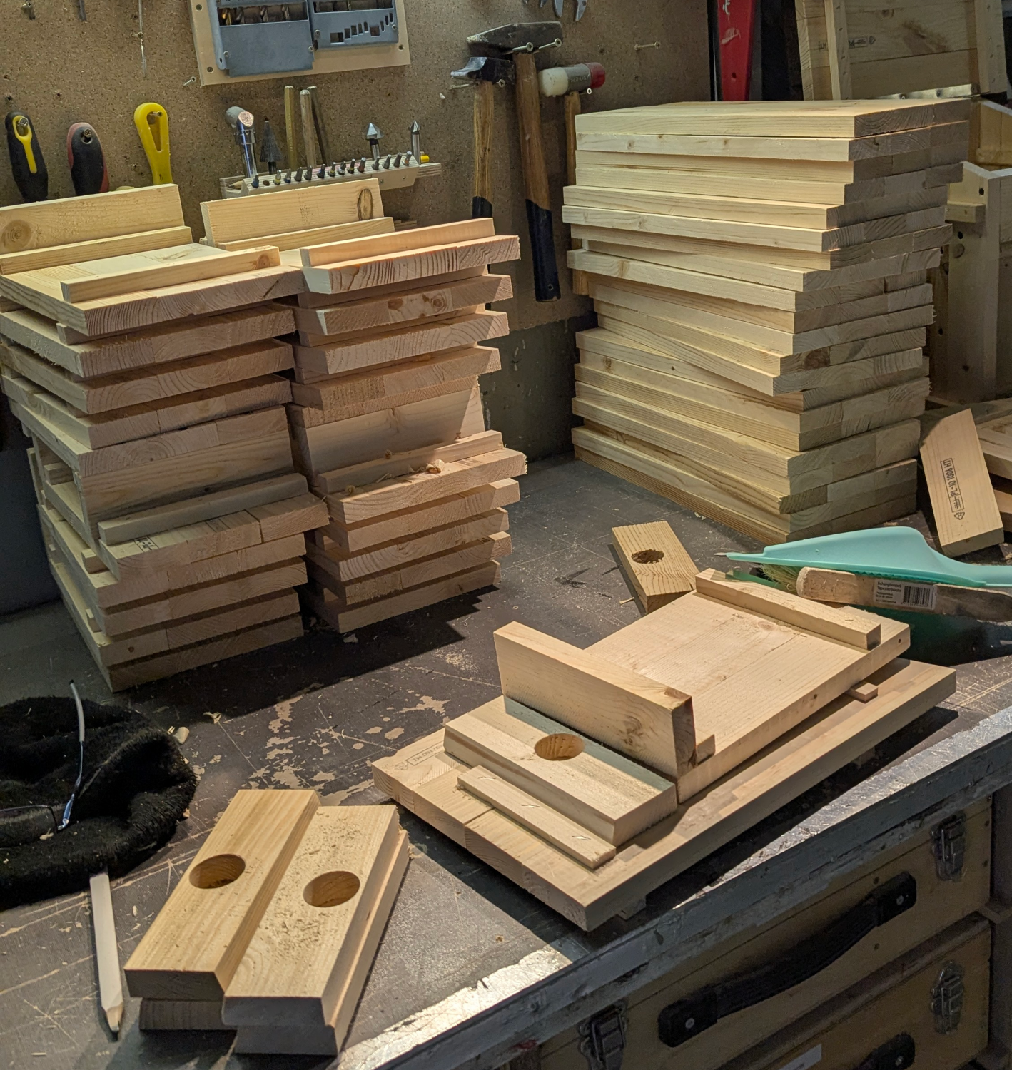 In diesem Sinne wurden 21 Nistkästen gebaut – speziell auf die Bedürfnisse des Wendehalses abgestimmt. Besonderer Wert wurde auf den Schutz vor Nesträubern wie Marder oder Waschbär gelegt: Die Kästen sind deutlich tiefer als herkömmliche Meisenkästen, besitzen gesicherte Klappen und einen Vorbau, der das Eindringen erschwert. Gefertigt wurden sie ausschließlich aus Restholz – ein Pluspunkt in Sachen Nachhaltigkeit.