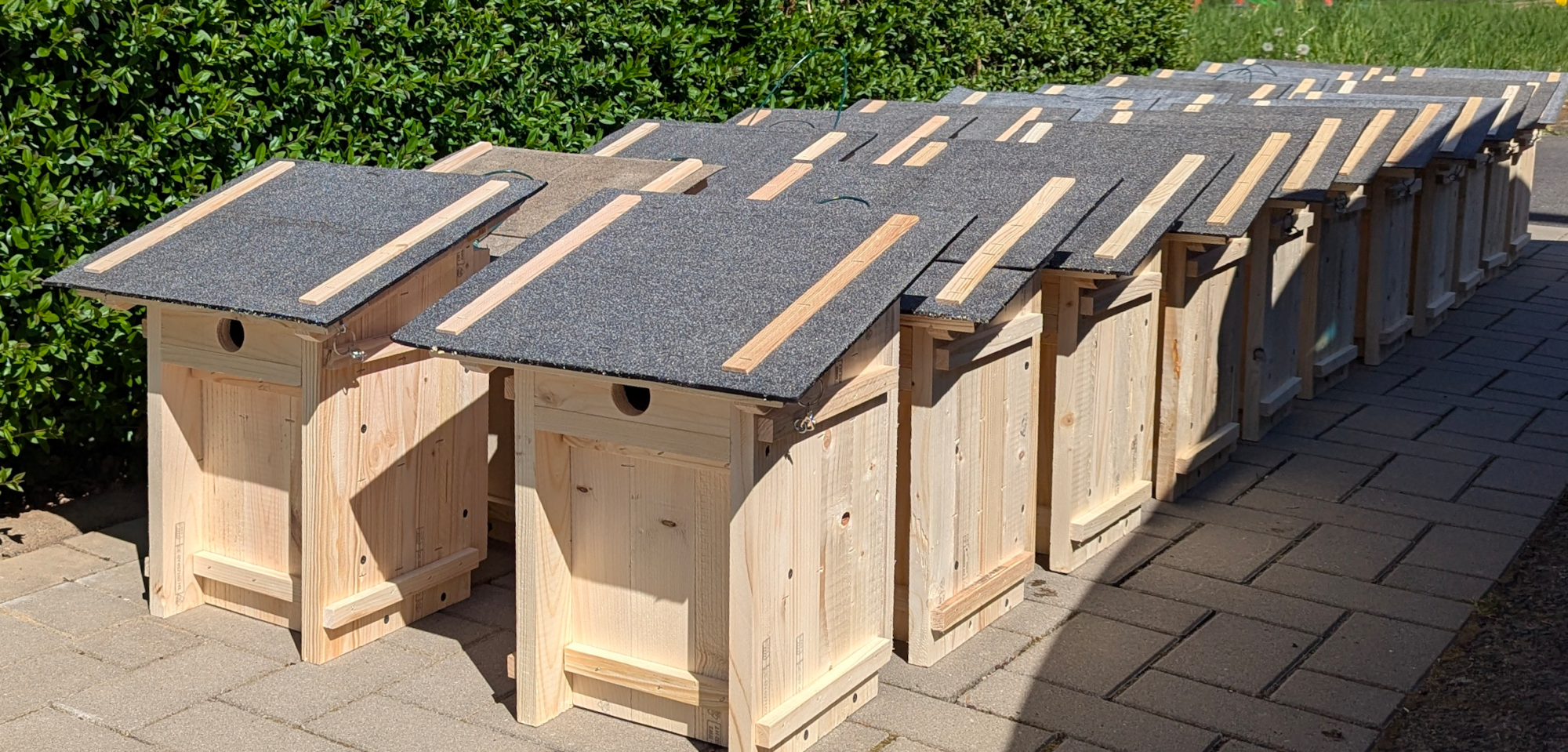 Die fertigen Kästen- besonderer Wert wurde auf den Schutz vor Nesträubern gelegt.